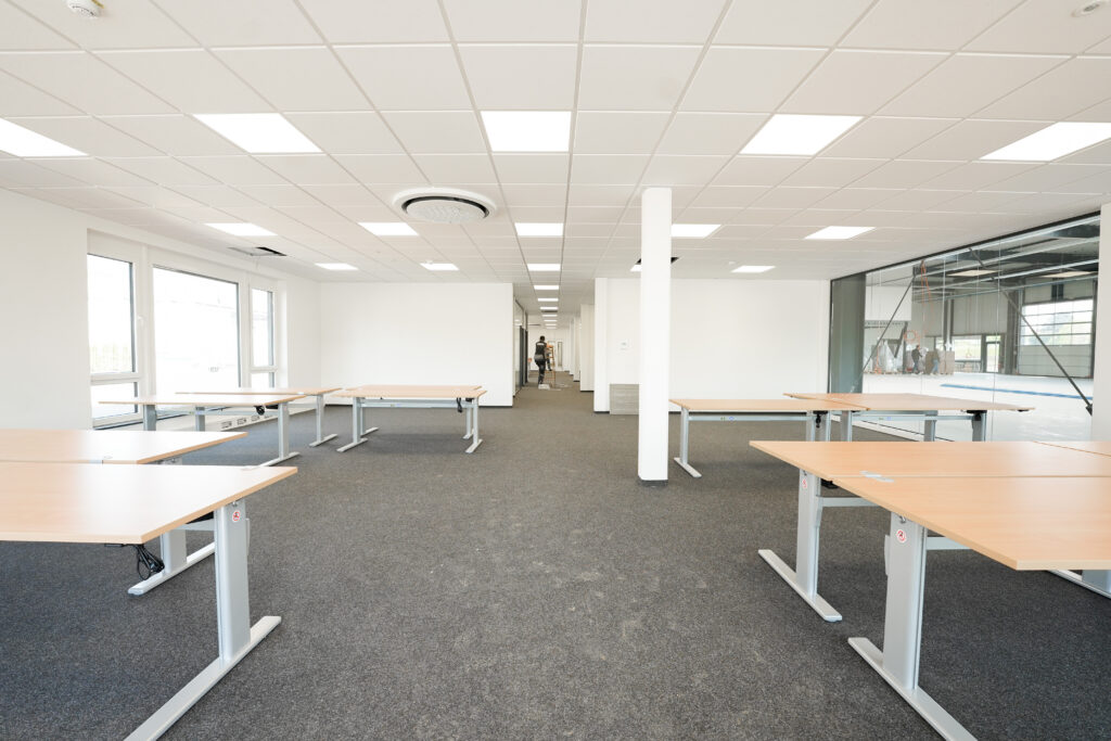 Ziel: Neue Gewerbefläche mit deutlich mehr Möglichkeiten. Die verschiedenen Stationen sollen optimal beliefert werden können und ineinander greifen. Mehr Platz und Möglichkeiten auch für das gesamte Team im Büro. Sicherheitstechnisch soll viel mehr möglich sein und das gesamte Gebäude soll energieeffizient sein.